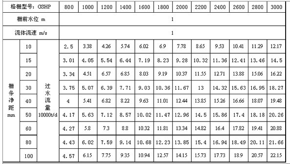 GSHP型回轉耙式格柵主要技術參數(shù):