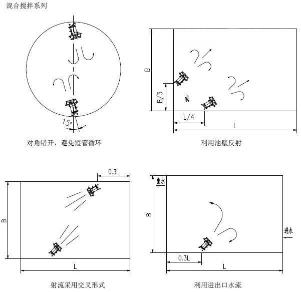 混合攪拌系列潛水?dāng)嚢铏C(jī)適用于各種水處理工藝和工業(yè)流程需要保持固、液二相或固、液、氣三相介質(zhì)均勻混合反應(yīng)的場(chǎng)所。